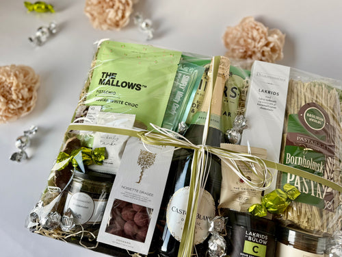 Gå på opdagelse i vores store udvalg af delikatesser, drikkevarer og lækkerier og sammensæt en gavekurv, der passer perfekt til modtageren.
