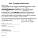 Ingredienser:  Hvid Chokolade med karamel (Min. 30,4% Kakao): Kakaosmør, sukker, sødmælkspulver, lactose (mælk), vallepulver (mælk), skummetmælkspulver, karamelliseret sukker (2%), emulgator: Lecitiner (soja), naturlig vanilje aroma, salt; Hvedemel, sukker, brun farin, smør, æg, vaniljesukker, bagepulver, salt, overfladebehandlingsmiddel: E414, glukose sirup, vegetabilsk olie, konserveringsmiddel: E200, surhedsregulerendemiddel: E330, Shellac, kan indeholde spor af jordnødder, og andre nødder.