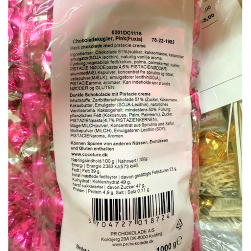 Se hele informationMælkechokoladekugler med fyld af kakaocreme, der smager af lakrids, er perfekte for dem, der elsker både chokolade og lakrids. Den bløde mælkechoko...