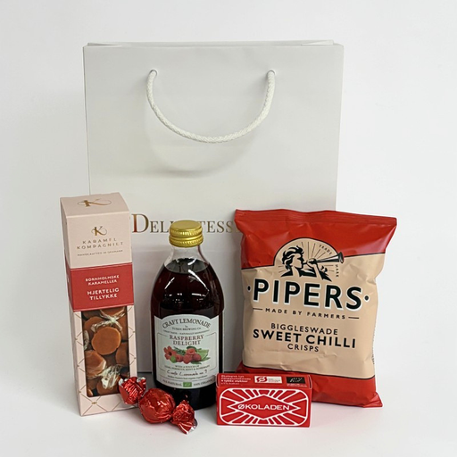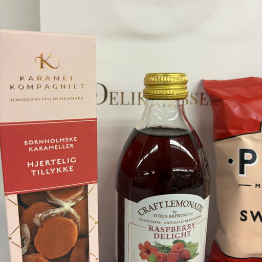 Se hele informationForkæl dig selv eller en, du holder af, med en gavepose fyldt med små lækkerier til både sød tand og tørst. Fra forfriskende drikke til sprøde og...