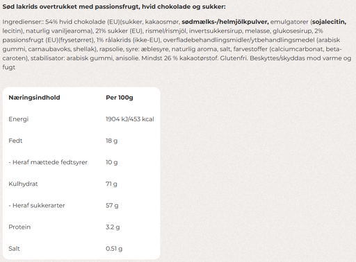 Se hele informationLakrids med passions-chokolade. Her er en gudeskøn delikatesse, der forener alle de forskellige elementer i én perfekt lækkerbidsken. I midten er e...