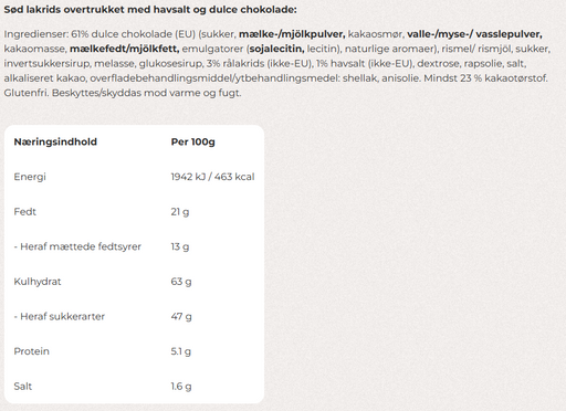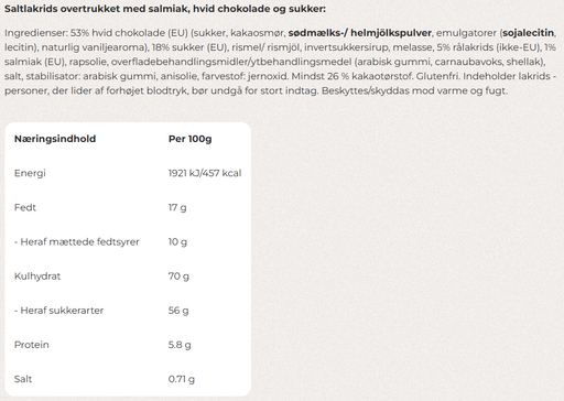Se hele informationLakrids omsluttet af mørk chokolade m. havsalt Det er ingen hemmelighed at chokolade og havsalt er det perfekte makkerpar. Her har de to komponent...
