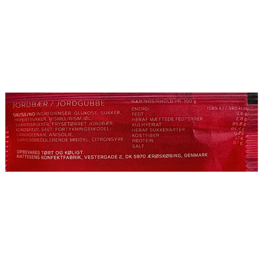 Se hele informationEn lille enkeltindpakket konfektstang med jordbær fra den danske gourmet-producent Hattesens Konfektfabrik. Stangen er fremstillet af naturlige rå...