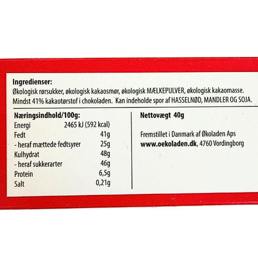 Se hele informationDansk, økologisk lys pålægschokolade Et must på morgenbordet og helt perfekt i en gavekurv. Lille rød æske med 9 stykker tyk pålægschokolade. 41% k...
