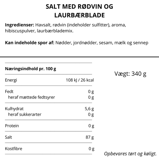 Se hele informationNicolas Vahé har udviklet et nyt og spændende saltblend med rødvin og laurbær. Smagen af vin er delikat, og salten er særlig egnet til madlavning m...