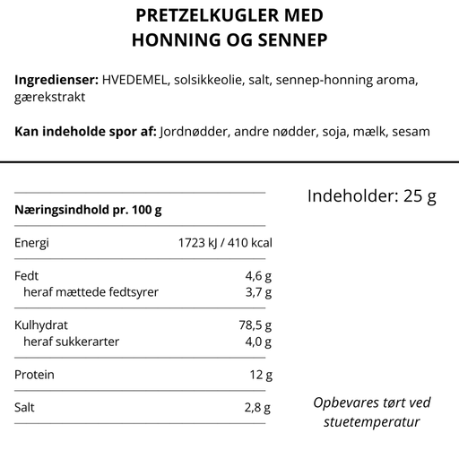 Knas af sødt og stærkt Sprøde, pretzel-kugler krydret med sennep og honning. En sød og krydret, knasende hapser - hvad mere vil man have i en snack...