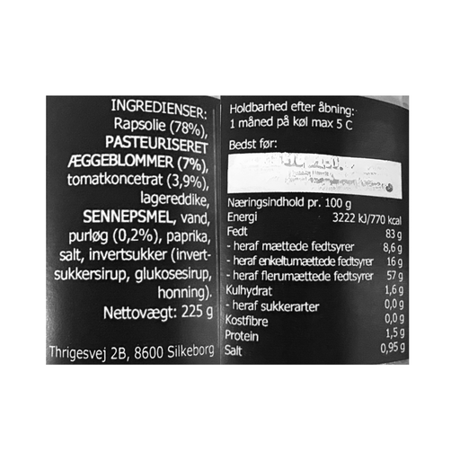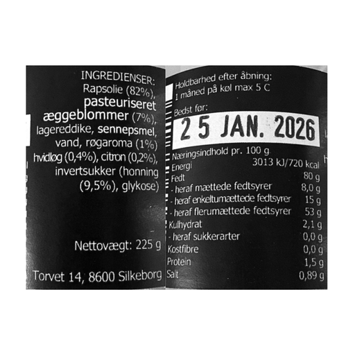 Se hele informationMayo på den fede måde. KUDSK Hvidløg citron røg mayonnaise, er fremstillet af rapsolie, æggeblommer, hvidløg, citron og røg. Velegnet på frokostbor...