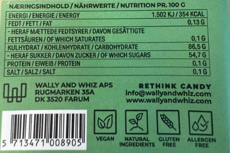 Se hele informationFrisk & sød Lime-vingummi fra Wally & Whizvendt i syrlig citronpulver Forestil dig en blød lime vingummi, der både er frisk og sød i smagen...