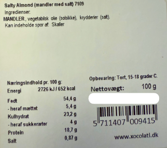 Se hele informationKlassisk kombi - Sprød og pikant Ristede spanske mandler med salt og peber smag. Hvis du elsker smagen af mandler og salt/peber, så er disse mandle...