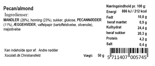 Se hele informationBlød og lækker fransk nougat med pekannødder fra Xocolatl Baren måler: 10 × 3,1 × 1,9 cm
